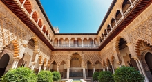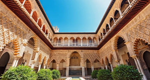 塞维利亚王宫是欧洲最古老的皇家宫殿,在1987年是已经被选为世 界文化遗产。王宫修建于中世纪,最早是摩尔人的城堡,后来是伊斯兰风格、基督教风格和哥特风格的融合,非常能够体现安达卢西 亚本地区的建筑风格。除去建筑,王宫的花园也混合阿拉伯式和哥特式这两种风格,很有看头。这里还是电视剧《权力的游戏》中多恩的马泰尔家族的皇宫庭园拍摄地。