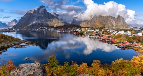 从北到南,一个接一个,无穷尽的曲折峡湾和无数的冰河遗迹构成了壮丽的挪威峡湾风光。而奥勒松,就是躺在峡湾臂弯里的一座最美丽的小城。充满新艺术风格的特色建筑,峡湾环绕的自然景观,还有孙默勒地区绵延的群山,这就是奥勒松(Alesund)的特色所在。