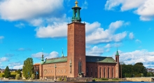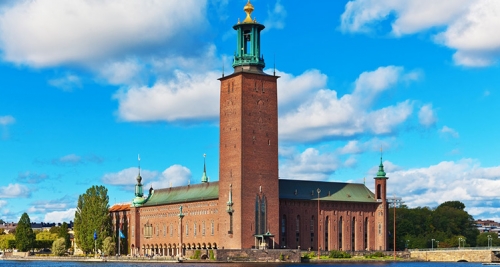 斯德哥尔摩市政厅建于1911年,位于瑞典首都市中心的梅拉伦湖畔,是斯德哥尔摩的形象和代表,市政厅中最著名的莫过于蓝厅,是每年12月10日举办瑞典盛宴--诺贝尔晚宴的地方。