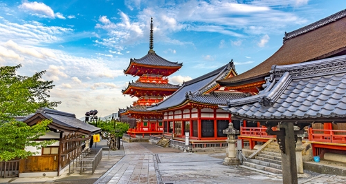 【清水寺】世界文化遗产,京都人气观光景点。始建于778年,是京都最古老的寺院,是日本国宝级文物。地主神社位于清水寺正殿北侧的,是日本结缘、祈求恋爱运的神社。