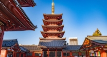 浅草寺是东京历史悠久、人气旺的寺院,也是浅草地区的中心,供奉的本尊是圣观音。它始建于7世纪,因屡遭火灾,后被重建。相传因三位渔民出海捕鱼时捞起了一座约5.5厘米高的金观音小雕像,才修建了这座庙宇。风雷神门浅草寺的象征是入口处的风雷神门,左右分别是镇守寺院的风神和雷神,大门上挂着写有“雷门”两字的巨大红灯笼,非常气派。门后挂着两个巨大的草鞋。仲见世商店街门内是通往寺庙广场的仲见世商店街,一字排开的诸多店铺摆满了各种日本风情的小商品,如传统的扇子、纸制的小玩意等。这是东京热闹的购物街之一,很多游客在这里一边观赏一边挑选精美的工艺品。本堂来到浅草寺主广场会看到宝藏门,从这进去是百来米的铺石道,通向供奉观音像的本堂。广场上有一个巨大的香炉,很多人往自己身上扇烟,以庇护健康。本堂的屋顶很有特点,有明显的倾斜度,屋脊显得相当高耸,造型结构鲜明醒目。东边不远处的另一个出入口叫二天门,是国家指定的重要文化财产。此外,浅草寺内还有许多建筑物和史迹,值得细细观赏。