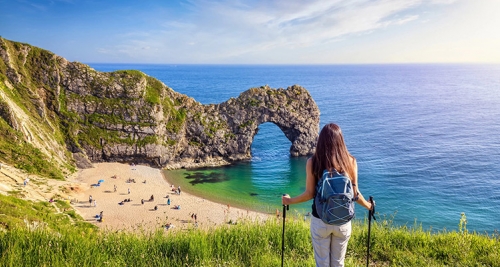 杜德尔门Durdle Door:一个天然形成的石拱门,几乎是笔直地矗立在海水中,形似大象鼻。沿着绵延的侏罗纪海岸线来一场“化石徒步之旅”,这条从侏罗纪时代就形成的白色岩石海岸线,展示了约1.85亿年间的地球发展历程,这里也被列入世界自然文化遗产。