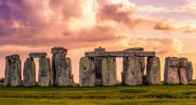 巨石阵:位于英格兰索尔兹伯里平原,约建于公元前4000~2000年,是英国重要的史前时代神庙遗址,这里还被列入了世界文化遗产。几十块巨石形成一个大圆圈在这一马平川的平原上矗立了几千年之久。
