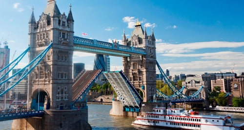 伦敦塔桥:伦敦塔桥是伦敦的地标建筑之一,也是伦敦的象征。它是一座横跨泰晤士河的吊桥,也是一座开启桥,当泰晤士河上有万吨船只通过时,桥身慢慢分开,向上折起,船只过后,桥身慢慢落下,恢复车辆通行。塔桥桥身为四座塔楼连接而成,桥长244米,分上下两层,上层为塔桥的参观者通过的人行道(需收费),行人从桥上通过可以饱览泰晤士河两岸的美丽风光;下层为车辆和行人通行(免费),如今桥面上只有两个车道,给行人留出了更多的空间。桥基上有两座高耸的方形主塔,主塔有五层楼之高,在主塔上建有白色大理石的屋顶和五个小尖塔,远看就像两顶王冠。来参观伦敦塔桥,可以站在泰晤士河边与它来一张合影,也可以漫步于桥面的人行道上,远眺泰晤士河两岸的景色,以及桥边的伦敦塔、伦敦市政厅、瑞士再保险公司大楼和英国军舰贝尔法斯特号。如果还想更进一步了解塔桥,则可以从北边的塔桥乘电梯上去,此外,塔桥内还设楼梯上下。里面有博物馆、展览厅、商店及酒吧。博物馆中以许多历史照片和互动式展示呈现塔桥100年来的演进,可以了解大桥的结构工程,而展览厅中可了解塔桥的历史及工作情况。然后步行在塔桥上方的悬空人行道上,人行道的两侧装有玻璃窗,玻璃窗前的钢架上挂着各国著名大桥的照片,其中也有上海豫园的九曲桥。在人行道上可尽情欣赏泰晤士河上下游的风光。假若遇上薄雾锁桥,景观更为一绝,雾锁塔桥是伦敦胜景之一。当然,你也可以选择乘坐泰晤士河游船的方式,从塔桥底下穿过,换个角度欣赏塔桥。塔桥两岸沿街布满了各色餐厅,参观完塔桥可以选择在岸边边欣赏塔桥,边用餐。当然,如果你自带食物的话,也可以前往塔桥两岸边的伦敦塔公园用餐,那里也是拍摄伦敦塔桥的地点之一。