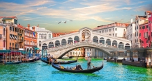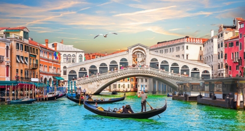 酒店早餐后前往——有“亚德里亚皇后”美称的水城威尼斯,所谓“以河为街,以船代车,处处街巷绕碧水,家家都在画图中”乃是威尼斯城的魅力,乘坐【威尼斯游船】(自费项目)上岛,在岛上可以乘坐穿梭于水街水巷的【贡多拉】(自费项目),游览【圣马可广场】,【叹息桥】,乘坐运河上的【黄金水道】(自费项目),感受水城之美。之后前往罗马,当晚入住罗马或其周边酒店。