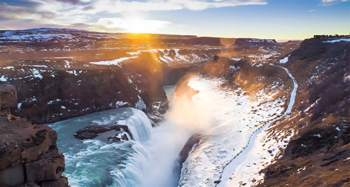 是冰岛的第二大瀑布,也是冰岛最漂亮的瀑布之一,之所以被赋予黄金之名,除了因为河水本身略带黄色的缘故外;亦因黄昏时候,整座瀑布会被日落的太阳染成金黄色,造成有如黄金般的珍贵美景而命名。