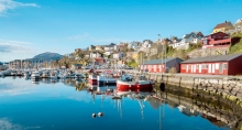 从北到南,一个接一个,无穷尽的曲折峡湾和无数的冰河遗迹构成了壮丽的挪威峡湾风光。而奥勒松,就是躺在峡湾臂弯里的一座最美丽的小城。充满新艺术风格的特色建筑,峡湾环绕的自然景观,还有孙默勒地区绵延的群山,这就是奥勒松(Alesund)的特色所在。