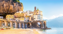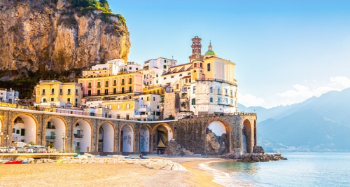 酒店早餐后,前往【波西塔诺】游览,远眺【索伦托】,接着去往【阿马尔菲海岸】,这里被誉为欧洲美丽的海滩。漫步依山傍水、风光旖旎的【阿马尔菲小镇】,参观阿马尔菲主教堂及博物馆。