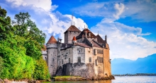 西庸城堡是一座雄伟的中世纪水上城堡,四周环绕着美丽的日内瓦湖与雄伟的阿尔贝斯山脉,由于它建立在日内瓦湖畔的岩石上,远观给人以漂浮在水面的奇异感觉,故被称之为建筑史上一颗奇异的珍珠,也是瑞士最负盛名的古迹之一,在民间素有“欧洲10大古堡”之称。在漫长的历史中扮演过军事要塞、监狱、避暑行宫等不同角色,因英国诗人拜伦的名篇《西庸的囚徒》而名扬天下。