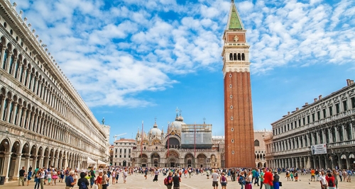 圣马可广场是由公爵府、圣马可教堂、圣马可钟楼等多个文艺复兴时期精美建筑围成的广场,法国皇帝拿破仑曾称赞其为“欧洲最美的客厅”。