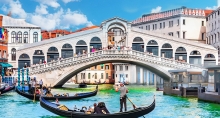 酒店早餐后前往有“亚德里亚皇后”美称的水城威尼斯(自费乘船上岛),所谓“以河为街,以船代车,处处街巷绕碧水,家家都在画图中”乃是威尼斯城的魅力,参观游览【圣马可广场】和【叹息桥】,乘坐【贡多拉】(自费项目)感受水城威尼斯的魅力。当晚入住里米尼或其周边酒店。