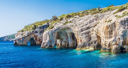 早餐后前往探索《太阳的后裔》取景地拍摄地【沉船湾】,陡峭的悬崖、清澈蔚蓝的海水、洁白的沙滩间,横着一条锈迹斑斑的老铁船。1983年,一艘往返意大利西西里岛走私香烟的船只Panagiotis号失事搁浅于此而被俗称为“沉船湾”。此外还将乘船来到【蓝洞】,大自然的鬼斧神工,悬崖被海水冲刷形成的一个个岩洞,由于光线折射海面,使洞内水面下呈现出不可思议的蓝,像蓝宝石一样清澈、纯净,美丽不可方物,海水清澈到洞里石壁上的水草、苔藓和海底的海绵等海洋生物都清晰可见。下午自由时间您还可以漫步【扎金索斯小镇】的 Solomos 广场。