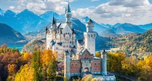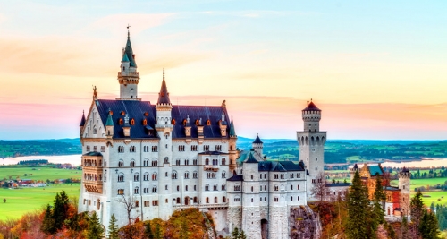 早餐后前往探访童话城堡——【新天鹅堡】(自费),巴伐利亚路国王德维希二世于19 世纪兴建了这座如梦似幻的欧式城堡。也是迪士尼城堡的原型,左方是清澈的【阿尔卑斯湖】,右方是一较小的天鹅湖,【玛丽安桥】连接了新天鹅堡南面两座山,横跨在山谷和瀑布上面,白色的新天鹅堡耸立在高山,被四周的山峰和湖泊所怀抱,一年四季,风光各异。结束游览后入住南部小镇酒店。