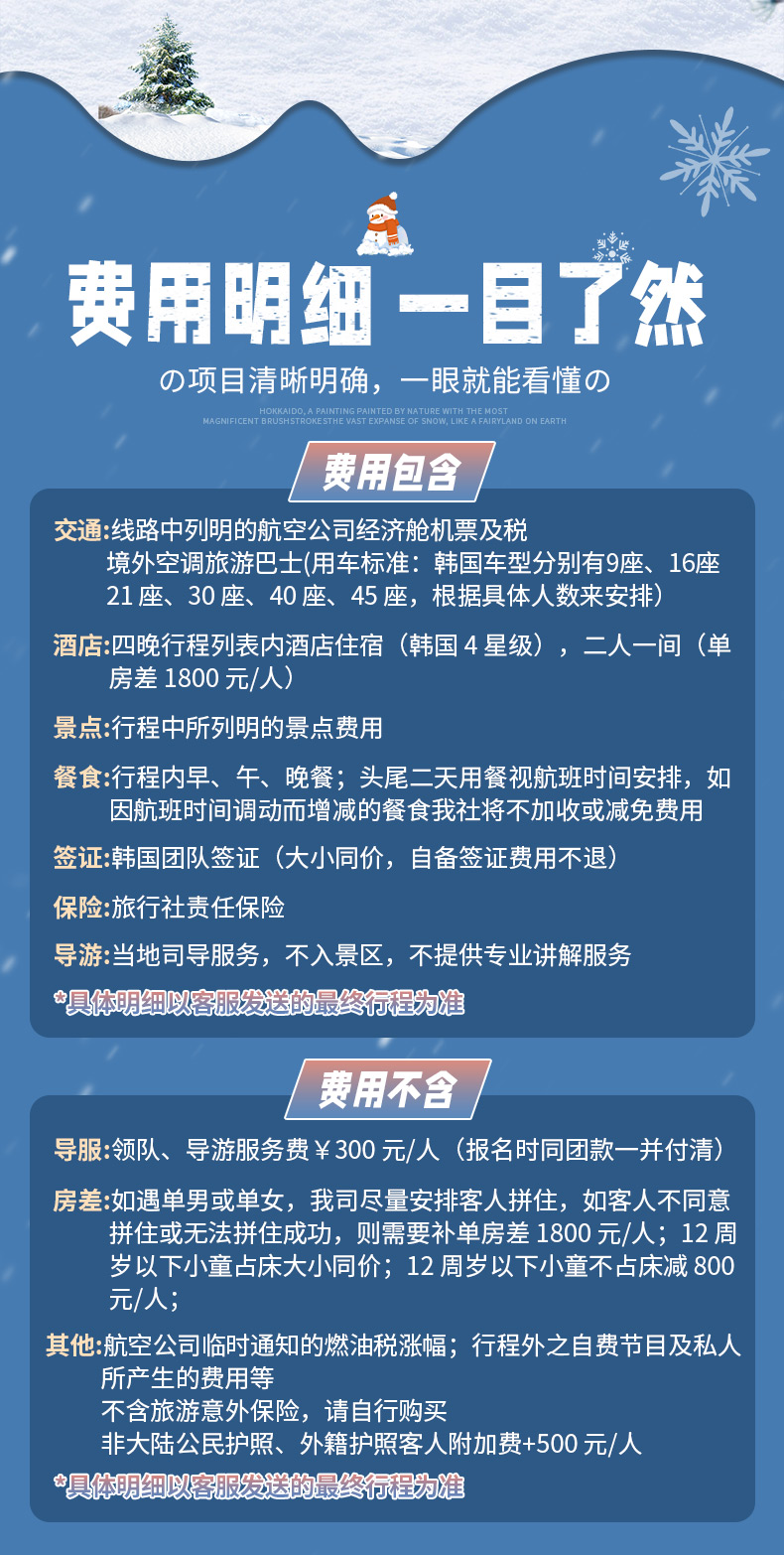 不含旅游意外保险,请自行购买;非大陆公民护照、外籍护照客人附加费+500 元/人
