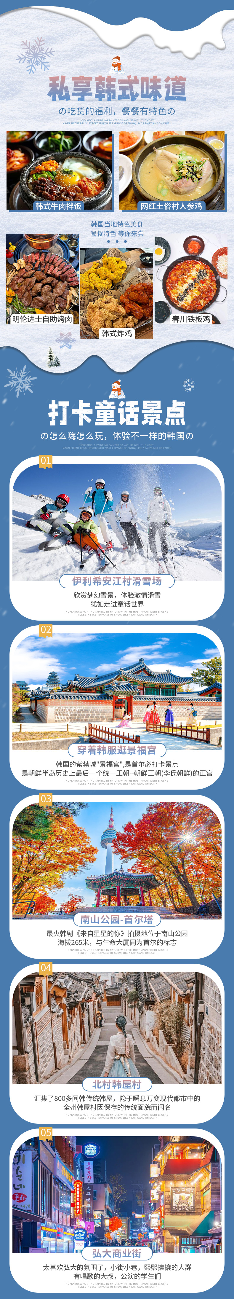 【景点门票】:南山公园、青瓦台、景福宫、益善洞韓屋村、北村韩屋村、紫菜博物展示馆、广藏市场、明洞步行街