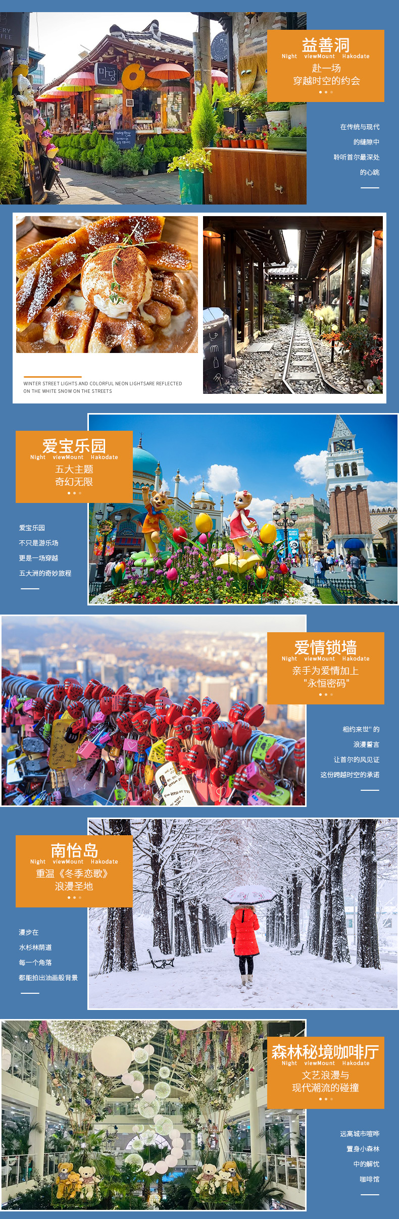 【体验活动】:韩服体验店换装、涂鸦秀、弘大商业街、森林秘境咖啡馆